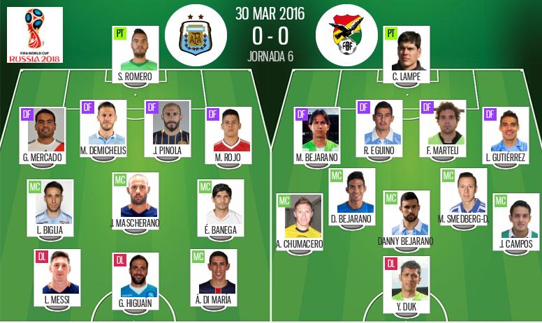 Bolivia 6 Argentina 1 Alineaciones